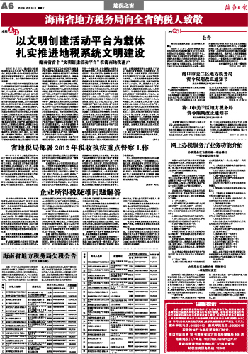海南日报 地税之窗 006 2012-10-241 2012年10月24日 星期三