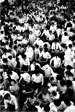 在海南岛,20世纪七八十年代以后自行车开始带有明显的个人色彩,同时也留下挥之不去的集体印记。在海南摄影家黄一鸣先生的作品中,自行车则作为时代的背景频频出现。尤其在海南建省前后,更是伴随“十万人才下海南”求职创业的人潮,无意成为一个共有的大特区符号,见证各种离奇境遇,又历经疯狂与沉寂,就像一个刚过海峡的大陆人开始领略诡谲多变的热带天气。老胶片记载的是海南岛社会发展的吉光片羽,更是一段隐含小小沧桑的年代记忆。