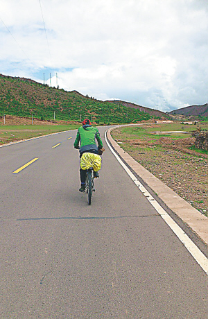 为了充分体验脚踩单车旅行的苦与乐,杨高一路上坚持骑行,即便速度很慢,也未曾考虑过乘坐其他交通工具,几乎每座山他都是第一个到达垭口。“当然,辛苦也是不忍回首。在海拔3000多米的山路上,由于空气稀薄、气压低,水是烧不开的,只能吃冰凉的食物,还不能吃饱,不然呼吸会更困难。但是,不管怎样,我坚持下来了。”杨高微笑着说。