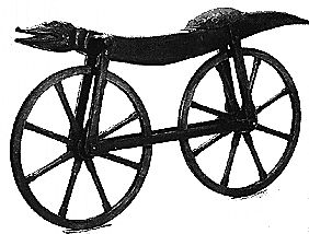 1791年,法国人西夫拉克伯爵(Comte de Sivra)雨天散步时被过往马车溅泥,恼怒中兴起将马车一剖两半的想法,并因此研制出“木马轮”———这辆既无传动链条也无转向装置,只能直行的木马是自行车的雏形。