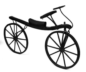 1817年,德国男爵卡尔·冯·德莱斯制造出一辆带把手的木马轮,仍以双脚交互踩踏地面行进,但一个革新是由于安装了把手,使得木马轮能得以左右转向。冯·德莱斯称为“奔跑机械”,今天的自行车业界将此称为push bike,即推力两轮车。次年,冯·德莱斯的发明传入英法取得专利,并有了一个更具有亲和力的名字———“玩具马”(hobby horse),不久,德国、英国相继出现了玩具马专业驾校。同年,英国机械师丹尼斯·江生将玩具马改制成铁制骨架,相比木马其重量大为减轻。