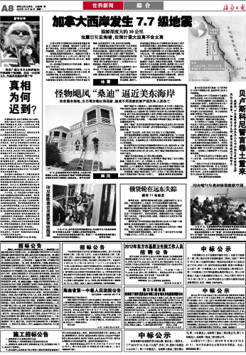 海南日报 世界新闻综合 008 2012-10-291 2012年10月29日 星期一