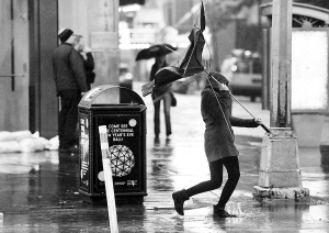 “桑迪”登陆时,大西洋城街道上几乎空无一人。这座美国东岸的“赌城”,平日熙来攘往,热闹非凡。但随着风暴呼啸而来,大量降雨和涌上堤岸的潮水让整个城市大面积积水,一些街道积水甚至超过1米,基本阻断通行。