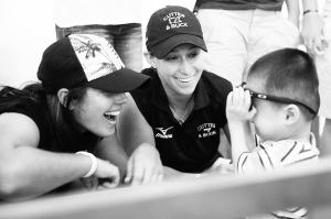 10月30日,前来三亚参加2012三亚·新华信托女子高尔夫公开赛的各国球星,与三亚红树林度假酒店青年志愿者一行数十人,到三亚福利院探访孤残儿童,为孩子们送去了糖果、书籍、玩具、生活用品等礼物。 本报记者 苏建强 摄