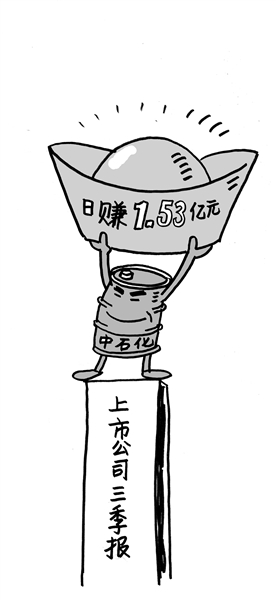 据中石化公布的三季度业绩报告显示,中石化1-9月份实现净利润为419.5亿元,比去年前三季度599.6亿元减少了30%。另外,根据中石化的净利润计算,其三季度相当于日赚1.98亿元,而1-9月份,中石化日赚金额为1.53亿元。