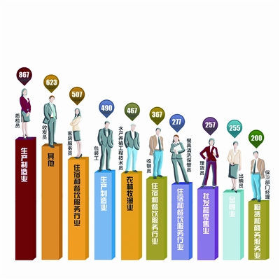 2012年平均薪酬涨幅前10名的职位(包含保险)