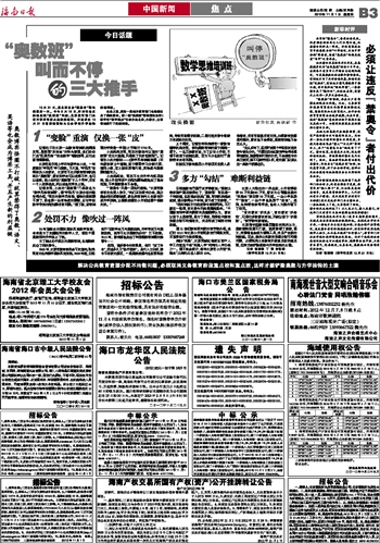 记者近日在北京一些教育培训机构调查发现,奥数班“反封杀”的势头很猛,他们纷纷打出“拓展思维”“快乐数学”等新旗号,应对此番清理整顿。