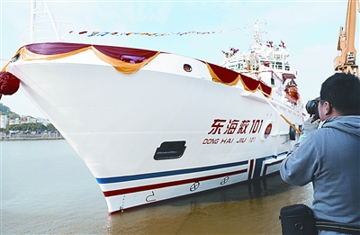 10月31日,中国目前马力最大、救助设备最为齐全的远洋专业救助船“东海救101”轮在广州中船黄浦造船有限公司交付给交通运输部使用。“东海救101”轮是国内自行设计、救助船舶中尺度最大、功率最大、航速最快、抗风能力最强、装备最先进、救助功能最齐全的海洋专业救助船。 新华社发