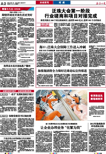 海南日报 本省新闻时政 002 2012-11-011 2012年11月01日 星期四