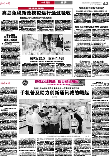 海南日报 本省新闻经济 003 2012-11-011 2012年11月01日 星期四