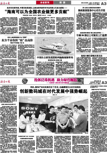 尤其在推进国际旅游岛建设后,海南大力发展以旅游业为龙头的现代服务业,为包括数码业在内的商业业态带来了巨大的市场空间。今年12月20日,创新书店开发的儋州创新文化广场即将开业迎客,其中创新数码城面积约7000平方米,主要经营电脑、手机、相机等数码产品,将建成海南西部最大的电脑、相机卖场,将打破垄断、反暴利的理念继续进行下去。