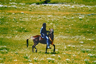例外的是小扎西们,三个小男子汉8点多就来到了我们住的帐篷,当然还有他们的马。他们和汉族的卓玛们约好了,早上要再骑他们的马,还相约骑着马儿去对面的大山上走一圈。这下我们的小卓玛们玩了个高兴,每人一匹马向草原的深处跑去。