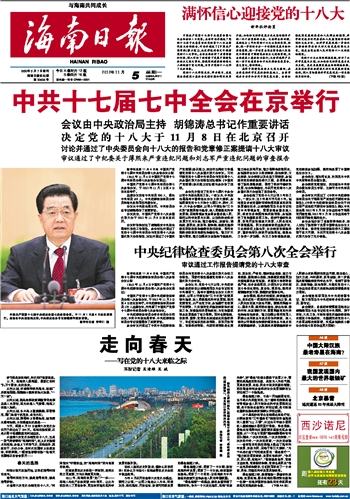 | 海南日报 头版 001 2012-11-051 2012年11月05日 星期一 |