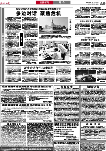 | 海南日报 世界新闻综合 009 2012-11-051 2012年11月05日 星期一 |