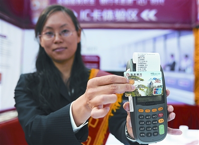 据了解,金融IC卡采用国际先进的智能卡技术,由银联成员机构发行,除具备磁条卡所有功能外,还加载了电子现金功能,持卡人无需密码和签名,即可进行小额快捷支付。 新华社记者 杜宇 摄