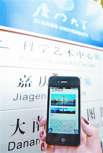 近日,厦门大学在校园内安置了40余块二维码导览牌,只要用手机扫描二维码即可得到相应校园内景点、设施的详细介绍,方便了新生和游客更加快捷地了解厦门大学。