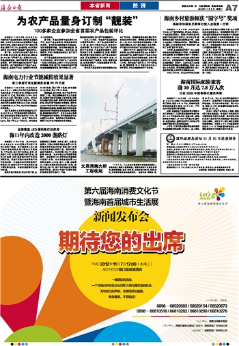 海南日报 本省新闻经济 007 2012-11-061 2012年11月06日 星期二