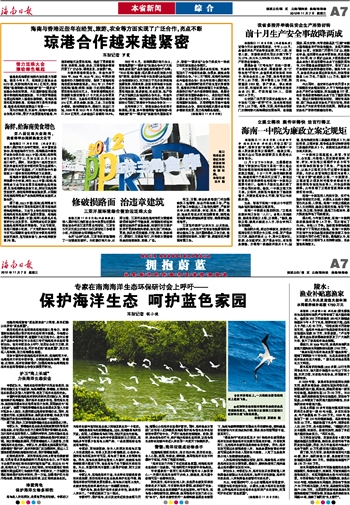 海南日报 本省新闻综合 007 2012-11-071 2012年11月07日 星期三