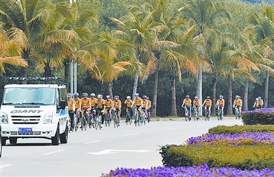 11月2日,多次到海南体验骑行的江苏捷安特自行车文体基金会理事长朱雄瑜又一次来到海南岛。与过去不一样的是,这次由他带队的不再是一个以挑战自我为主题的骑行团,而是一个以骑车旅游为主题的旅游团。尽管首批30多名游客有些特殊,大多是来自捷安特在全国各地的经销商,但他们参加的其实是一款10天行程的海南环中部骑游主题旅游产品,这款产品面向全国推广销售,海南地接报价2800元/人,今年将陆续有全国各地游客到海南体验这款骑游产品。
