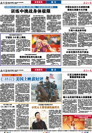 | 海南日报 体育新闻综合 012 2012-11-121 2012年11月12日 星期一 |