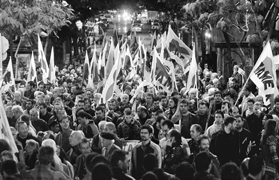 首都雅典约10万名民众11日在议会外示威,抗议财政紧缩方案。 新华社/法新