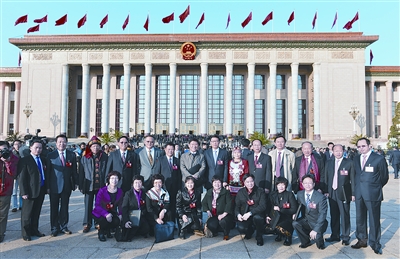 海南代表团部分代表合影。