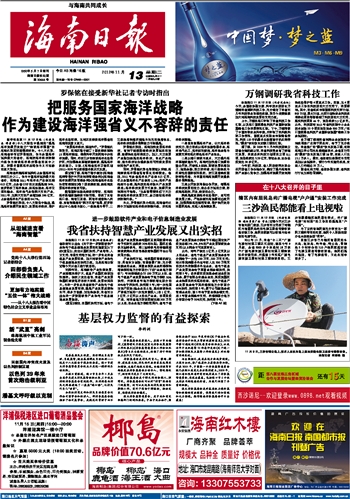 海南日报 头版 001 2012-11-131 2012年11月13日 星期二