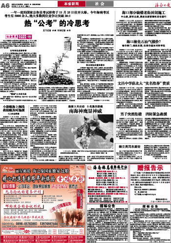 社会聚焦 民生故事 百姓视角 一年一度的国家公务员考试即将于11月25日拉开大幕,今年海南考区考生有5000余人,绝大多数岗位竞争比突破20:1 见习记者 杜颖 本报记者 林伟 2013年国家公务员考试日前发布公告,11月19日起打印准考证。今年,仅报考海南职位的考生就有5000余人,绝大多数岗位竞争比突破20:1。如此激烈的竞争,让不少人看不懂:公务员考试(下简称公考)何以魔力至此,引得万千学子“竞折腰”? 公考岗位成香饽饽 10月24日,国考报名截止的当天,同济大学土木工程专业毕业的陈笑楠从广州飞回海口。回家固然好,用小陈的话说,她这是“一颗红心两手准备”,一边准备明年的研究生考试,一边试着踩踩公务员的“独木桥”。 今年7月。小陈刚毕业就被广州一家建筑企业录取了。本想在广州有一番作为的小陈,却在不久前突然接到公司通知,要调她到一个县里去开展新业务。眼看着待在广州的小期盼成了泡影,小陈没多想就辞职了。 “现在报了国考,挑一个离家近的单位,谁也不能把我调来调去。”小陈考公务员的想法很单纯。 眼看着离11月25日的开考日期越来越近,毕业于海南师范大学的陆俏婷埋头苦读,架势有似高考。“现在工作不好找,很多企业也不景气,父母说‘稳定压倒一切’是有道理的。”小陆说这番话时感触颇多。 记者在采访中发现,除了考虑到职业稳定之外,也有不少考生是真心想为社会做一点实实在在的事情,而当上公务员,正是他们想服务社会和群众的途径。 “三百六十行,行行出状元,公务员也是一行,只不过现在有太多的人加入到这个队伍中,导致万人齐上独木桥。”毕业于西南财大法律系的吴迪分析说,“我跟同学报考时都想过,如果只是为了公务员的待遇,那还不如在自己擅长的领域创业,收入会更多。” “围城”之内有无奈 面对“城墙”外的一股股热流,“城内”的一些公务员们却有另一番感受。 26岁的王敏毕业于大连海事大学航运管理专业,2011年参加公务员考试,千军万马闯关成功,顺利进入了省级交通运输系统,成为一名科员。此前她供职于海口一家国企海运上市公司,工资5500元。而现在她的工资条上显示,连各项补贴在内总计不到3000元。 面对几乎“腰斩”的收入,王敏颇有些无奈,“总是听说公务员收入多高福利多好,因为‘听说’的高收入,加入了公考大军。到岗了才发现,实际收入跟预期有很大出入。” 文昌市文城镇政府的人都知道文彬辞职了,文彬是来自浙江温州的小伙子,家境富裕,2010年考入文昌市文城镇镇政府。 走上基层岗位,文彬很快感受到了“水土不服”的滋味。文彬告诉记者,自己并不怕吃苦,但是下村开展工作实在困难。“因为我听不懂海南话,一些村民转身就走,要说的情况也不反映了。”一向自信的他,开始怀疑自己的沟通能力。前不久,在父母的劝说下,文彬离职了。 同样因为“干着难受”而辞去公务员工作的葛铭,毕业于天津大学船舶与海洋工程专业。5年前,他选择了从稳定的机关单位“裸辞”(未找到下个单位就先辞掉现有工作)。 原来,当时刚进入机关不久的葛铭被分到文秘办,单位会议都由他做记录。葛铭说,“无休止的修改文稿,无数琐碎的工作,让我的自信心一点点消失殆尽,想不出这份工作究竟还图什么。”凭借专业优势,葛铭很快在海口某市政工程公司找到自己的新坐标,参与了海口市中心区水网动力工程,工作能力广受认可和好评。 职业规划应量体裁衣 公考连年“高烧不退”,对收入的期许,对仕途的展望,对职业稳定性的考量,让很多本身具有专业特长的年轻人,对自我价值如何体现有了犹疑和迷茫。 省人力资源和社会保障厅有关负责人接受采访时说,综合考虑自己的未来与理想,考生选择公务员职业未尝不是一条道路,不应一提到考公务员就认为是趋利行为。高素质的人才进入机关对国家的决策及执行都是有好处的。但在实际报考中,考生应该先问自己:“我到底适不适合做公务员?” 据悉,每年都有一些考生,为了避开激烈竞争而报考竞争对手少的偏远地区,去了之后才发现自己根本适应不了,很容易陷入痛苦之中。还有一些报考者看到周围的亲朋好友报名考试,自己也跃跃欲试,盲目随波逐流,这都不利于将来个人的职业发展。 海南大学教授杜文才认为,“学而优则仕”的文化传统在中国有较强的生命力,但并非所有人都适合进入“体制”内工作。做不做公务员,要对自身进行仔细的评定,对个人职业规划更要“量体裁衣”。 (本报海口11月19日讯) |