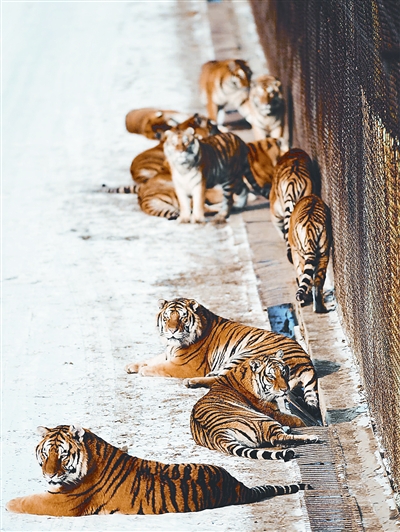 世界最大东北虎人工繁育基地黑龙江东北虎林园当日宣布,2012年东北虎繁育计划已基本完成,全年新增东北虎宝宝91只,其中将有20只优秀虎宝宝入选国家级种源梯队。目前虎林园内共有东北虎1067只,中国人工繁育东北虎全面开启“精生精育”新时代。 新华社记者 王建威 摄