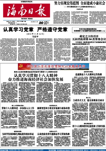 海南日报 头版 001 2012-11-201 2012年11月20日 星期二