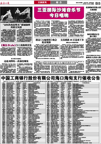 海南日报 文娱新闻综合 013 2012-11-231 2012年11月23日 星期五