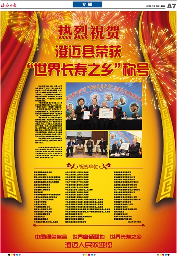 热烈祝贺澄迈县荣获“世界长寿之乡”称号