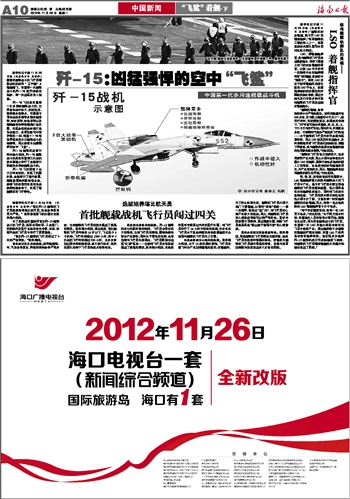 | 海南日报 中国新闻“飞鲨”着舰·下 010 2012-11-261 2012年11月26日 星期一 |