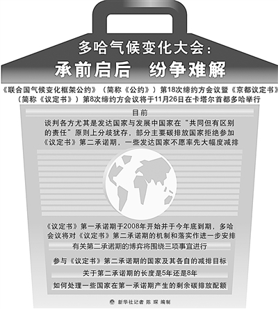 目前,谈判各方尤其是发达国家与发展中国家在“共同但有区别的责任”原则上分歧犹存,部分主要碳排放国家拒绝参加《议定书》第二承诺期,一些发达国家不愿率先大幅度减排,多哈会议能否找到既推动谈判进程又能符合各国根本利益的解决办法,将考验谈判代表们的政治智慧和诚意。从目前各方表态来看,多哈会议谈判将极为艰难。