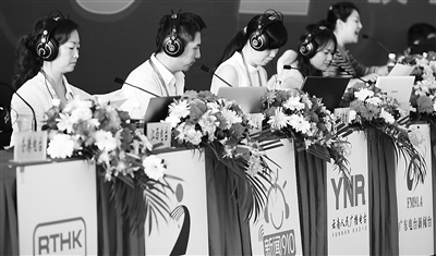 ① 11月28日,来自泛珠11个省区的电台正在报道泛珠大会。