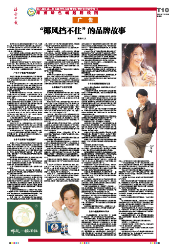 当时解读椰风的这则广告,不少业界人士分析认为公司的着力点在于“主打明星牌”。16年的历史沉淀之后,我们发现,流传在人们口中的则是“广告拍出的海南椰风海韵让人沉醉”。