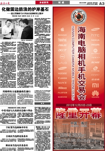 海南日报 本省新闻时政 003 2012-12-051 2012年12月05日 星期三