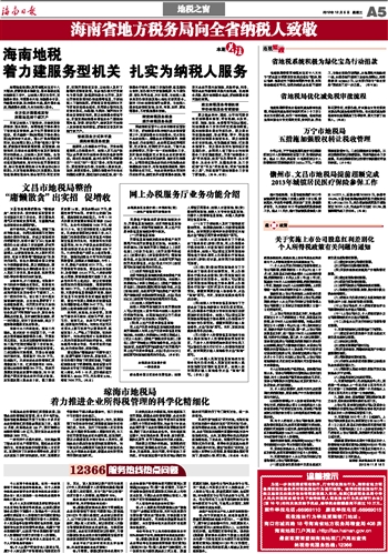海南日报 地税之窗 005 2012-12-051 2012年12月05日 星期三