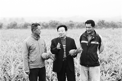 说着,大家一起走到许新宗的地里察看那些正在生长的菠萝苗。“这是我们新引进的台农16号,也叫‘甜蜜蜜’。”“这名字好,愿我们的生活也都甜蜜蜜!”大家的笑声传得很远。