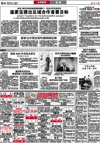 海南日报 世界新闻动态 012 2012-12-061 2012年12月06日 星期四