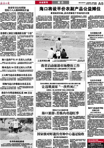 海南日报 本省新闻综合 005 2012-12-061 2012年12月06日 星期四