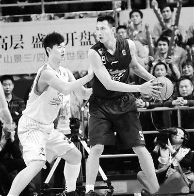 12月12日,在CBA常规赛第八轮比赛中,广东队在客场以104:103险胜福建队,豪取联赛六连胜。易建联得到27分10篮板,福建队年轻中锋王哲林得到24分13篮板。图为王哲林(左)防守易建联。 小新发