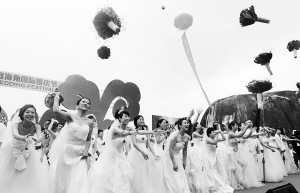本报三亚12月12日电 (记者黄媛艳)“山为盟,海为誓。从此我们永结同心,无论生老病死,无论贫富贵贱,不离不弃,天涯海角见证爱情永恒。”2012年第16届中国三亚天涯海角国际婚庆节今天举行,80对国内外的佳偶们在天涯海角景区齐诵婚誓。 上午10时,来自世界各地的80对佳偶在天涯海角石旁举行盛大的集体婚礼。伴随着婚礼进行曲的音乐,80对新人逐一在婚礼现场亮相,共同接受人们的美好祝愿。婚礼现场,新人们互送槟榔、行夫妻礼、幸福接吻,共同许下“爱你到天涯,陪你到海角”的浪漫承诺。 “一直期待可以在大海边举办一个浪漫的婚礼,半年前的室内婚礼让我有点小遗憾,但今天终于圆梦了。”参加此次婚庆节,是来自江苏的胡将、蒋霞夫妇收到的最美好的蜜月礼物。 为期两天的婚庆节还将举办一系列婚庆活动,包括天涯婚典和浪漫雨林—森林公园主题婚纱摄影、梦幻海岛—海岛婚礼主题婚纱拍摄、玫瑰之恋—玫瑰主题婚纱摄影、情定洞天—海洋环保主题婚纱摄影等婚纱主题摄影系列活动,以及玫瑰新娘婚纱摄影大赛等。 |