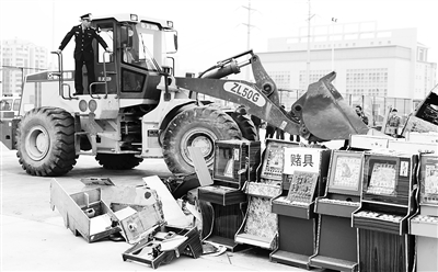 记者今天在集中销毁赌博机行动海口分会场看到,各种造型的赌博机10余种,其中有牌机、老虎机、彩球机、啤酒机。据了解,这些赌博机的价格最低的三四百元,最高的约1000元。