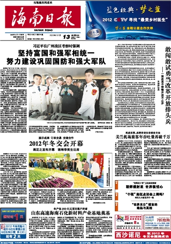 海南日报 头版 001 2012-12-131 2012年12月13日 星期四