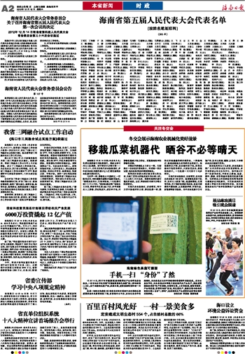海南日报 本省新闻时政 002 2012-12-151 2012年12月15日 星期六
