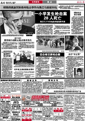 胡锦涛就康涅狄格州枪击事件向奥巴马致慰问电