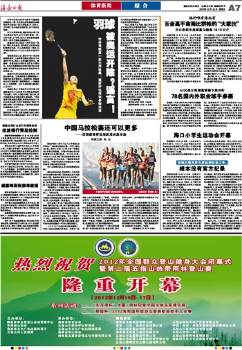 海南日报 体育新闻综合 007 2012-12-161 2012年12月16日 星期日