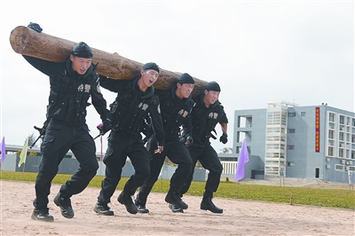12月15日,海口市公安局特警支队举行2012年训练成果汇报演练。此次演练共设有警用匕首格斗术、小组配合攀越障碍、警犬训练、特警战术动作、长短枪应用射击、处置群体性事件队形演练、劫持人质暴力案件处置等7个科目。