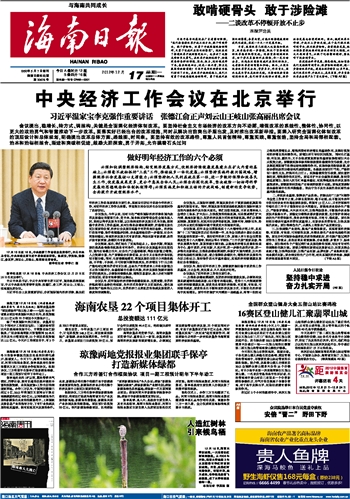 海南日报 头版 001 2012-12-171 2012年12月17日 星期一